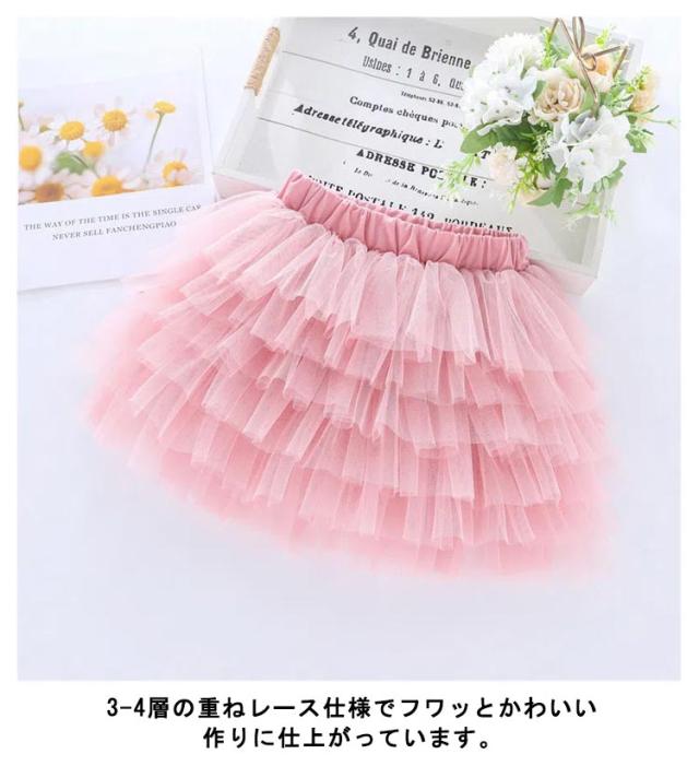 送料無料 チュールスカート キッズ 女の子 子供服 レーススカート 裏地付き ふんわり チュールスカート チュチュスカート バレエ ダンス フリル フレアスカート ミニスカート メッシュ レース ボリューム ふわふわ 可愛い 通園 通学