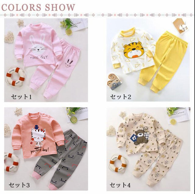 ベビー パジャマ 上下セット 綿 女の子 男の子 赤ちゃん 長袖 コットン 秋 インナー ルームウェア 部屋着 ナイトウェア 寝巻き 子供服 キッズ 73 80 90 100 110 120cm おしゃれ かわいい 幼児 女児 男児 冬 春 送料無料