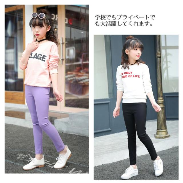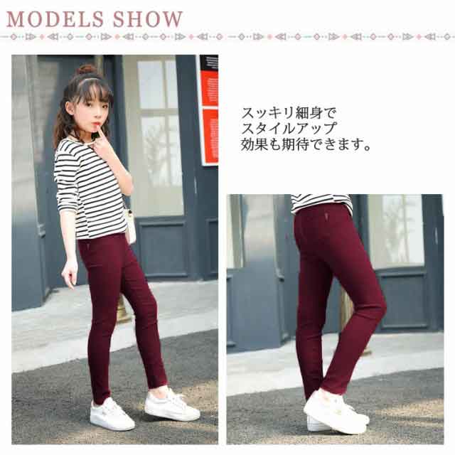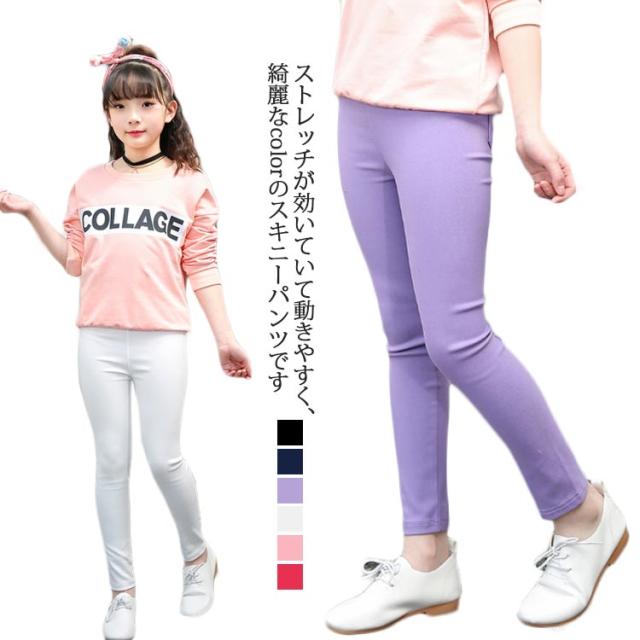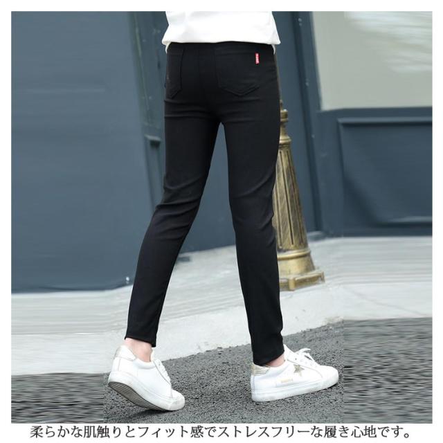 子供服 ストレッチスキニーパンツ 女の子 110 120 130 140cm ボトムス キッズ 長ズボン 子ども おしゃれ シンプル 春秋 スリム レギンス レギパン 無地 ジュニア 美脚 通学 10分丈 ポケット付き 黒 伸びが良い のびのび 送料無料