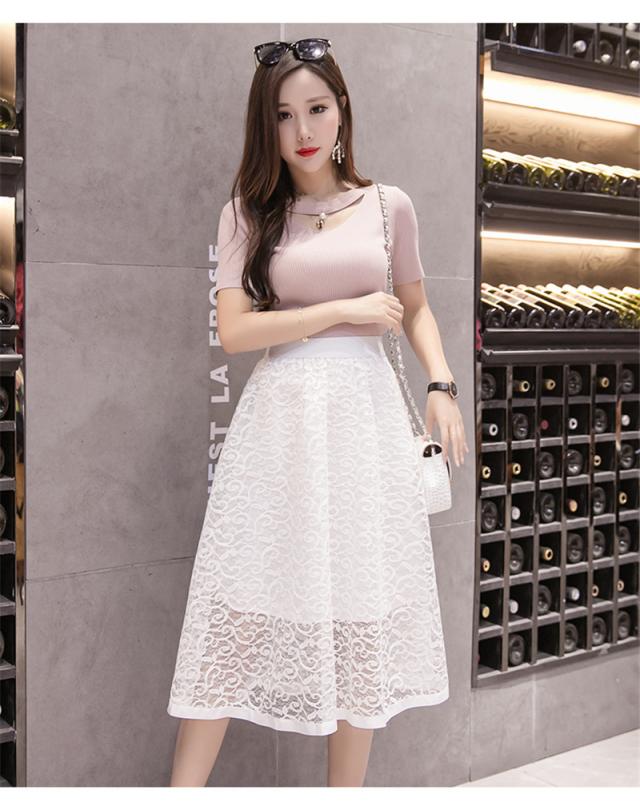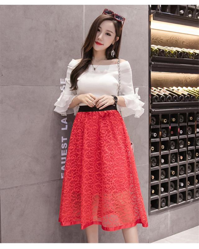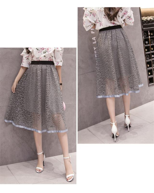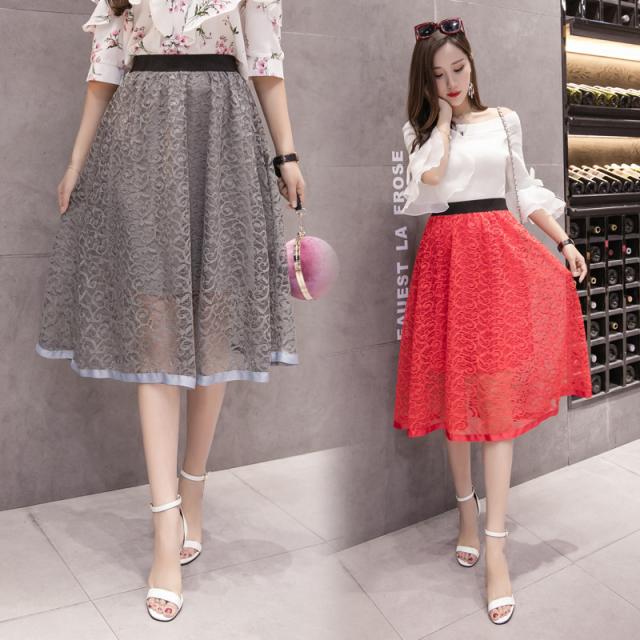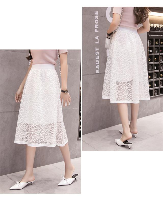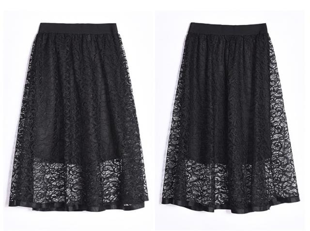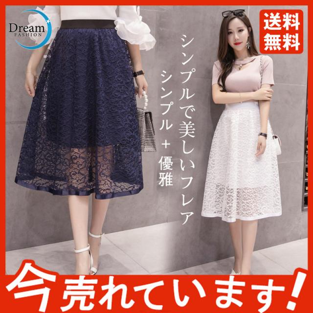 フレアスカート ミモレ丈 レーススカート レディース Aラインスカート イレギュラー 秋物 大きいサイズ 無地 ハイウエスト ボト
