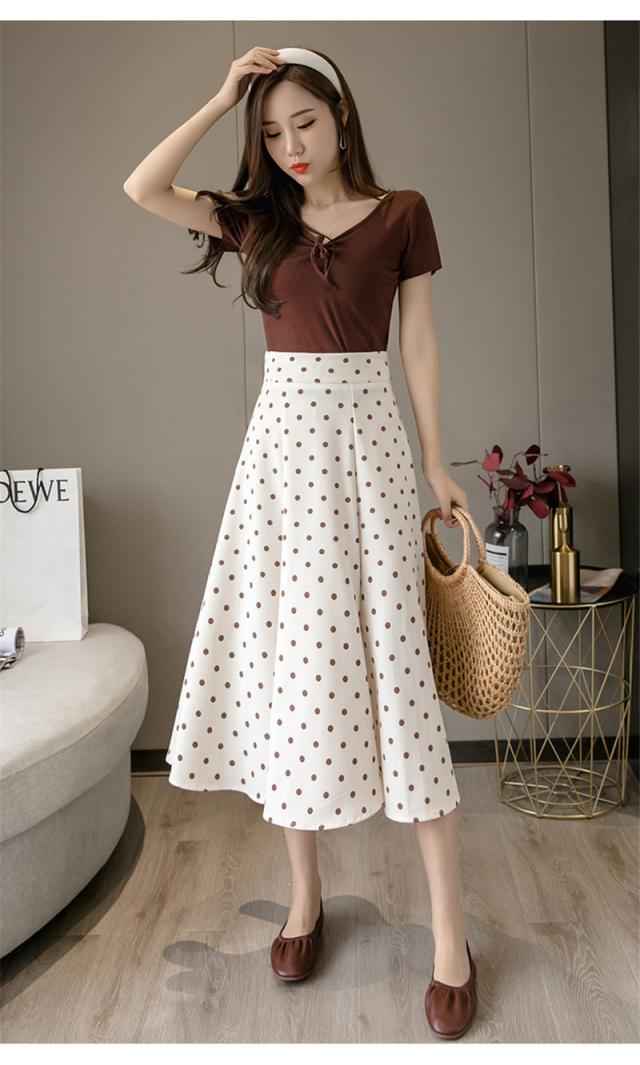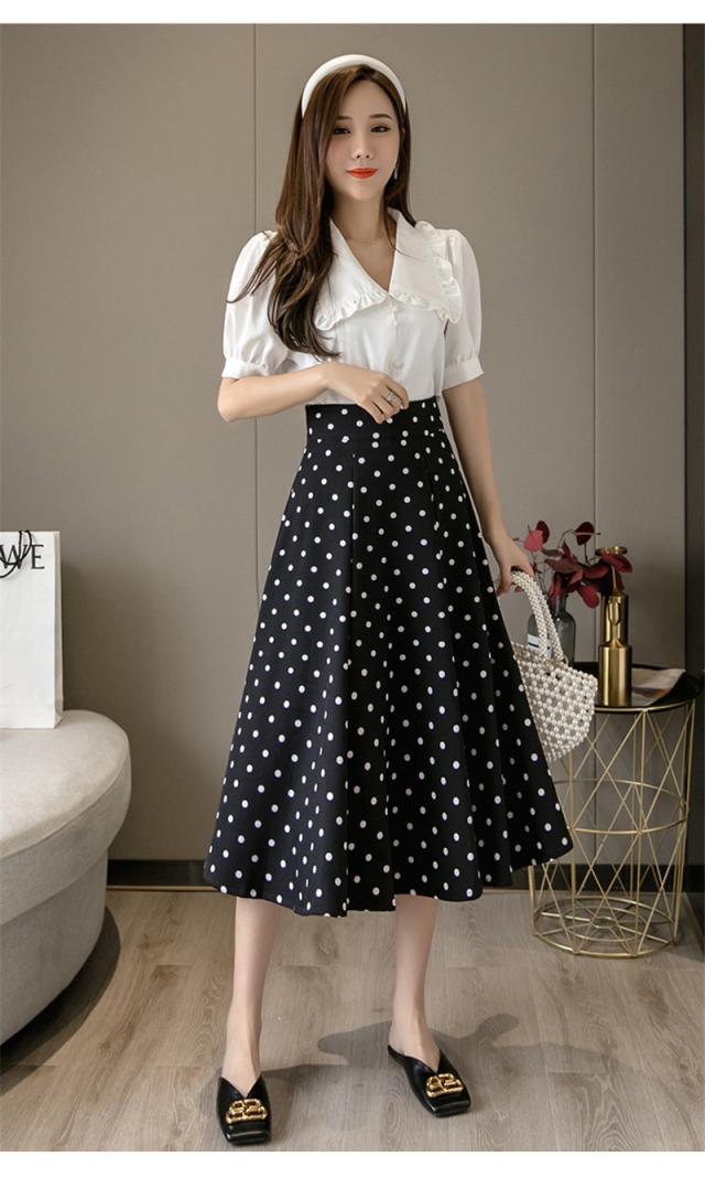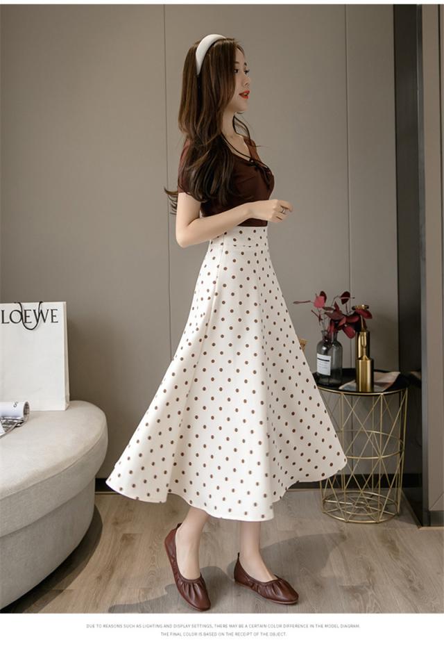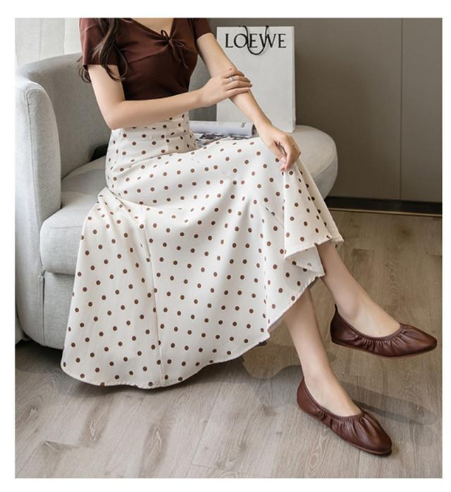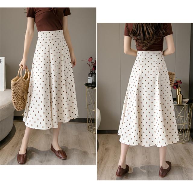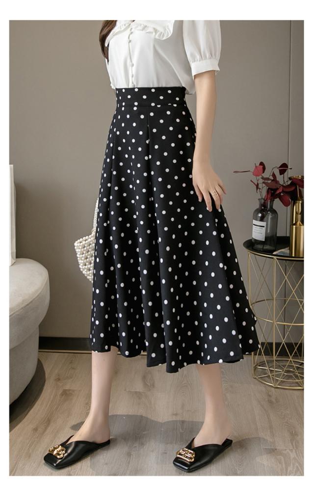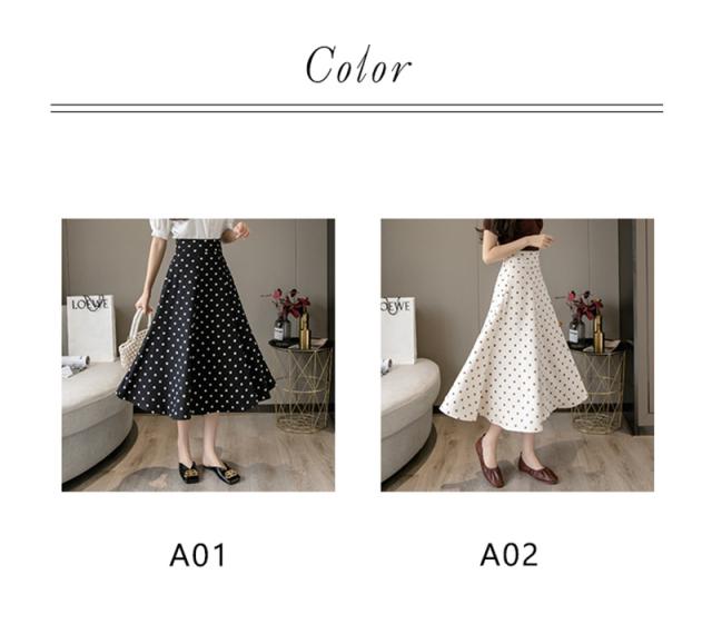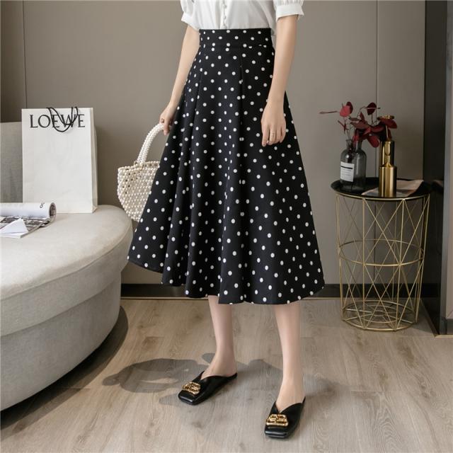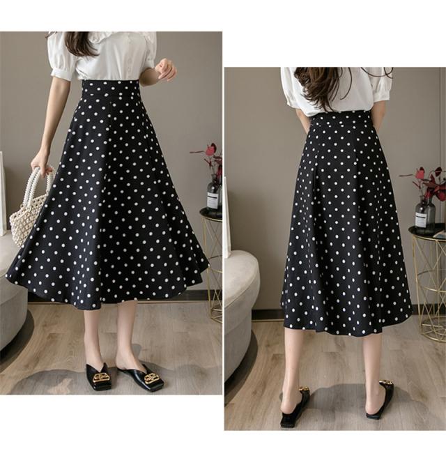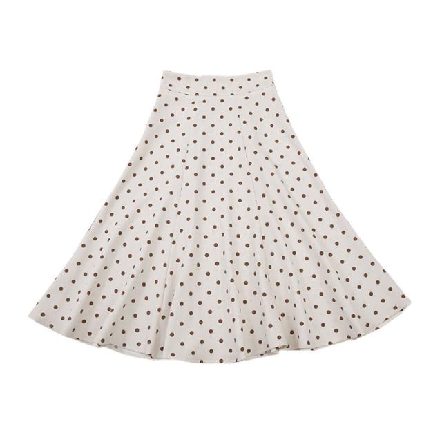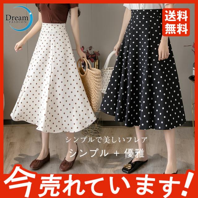 フレアスカート ミモレ丈 レディース スカート 夏 秋 膝丈 ドット柄 ロングスカート Aライン 体型カバー ボトムス おしゃれ