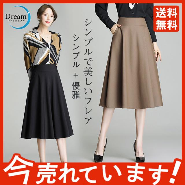 フレアスカート ミモレ丈 レディース 膝丈 スカート フレア ロング丈 膝丈 オフィス ビジネス 就活 送料無料 フォーマル OL