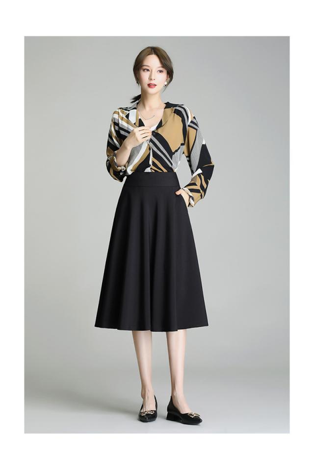 膝下のロング丈は、品のある落ち着いた大人の印象に!