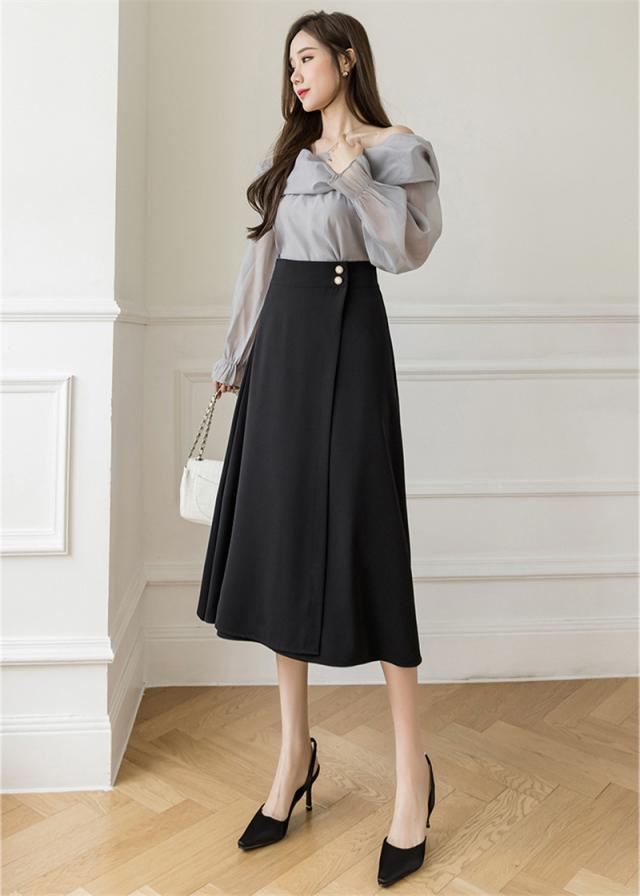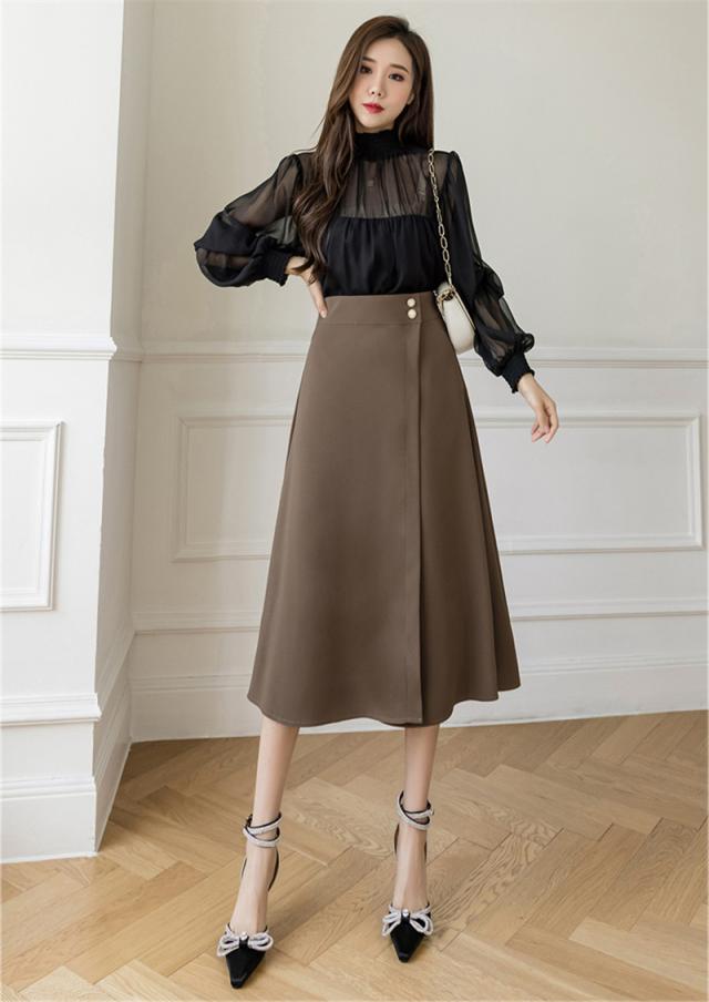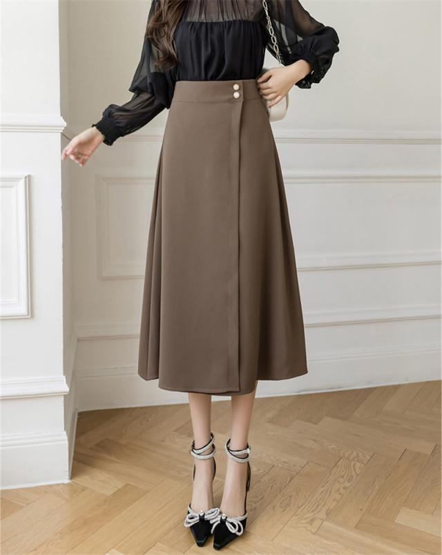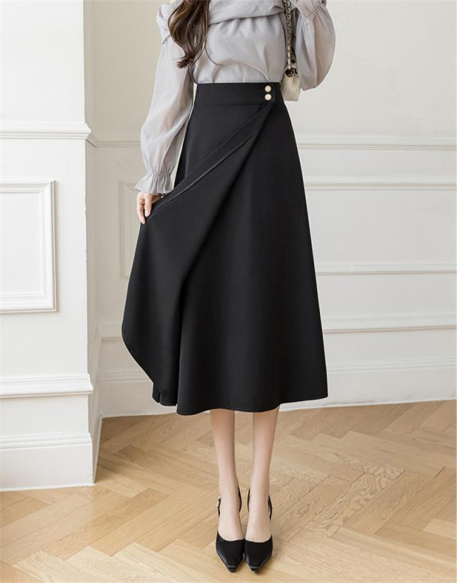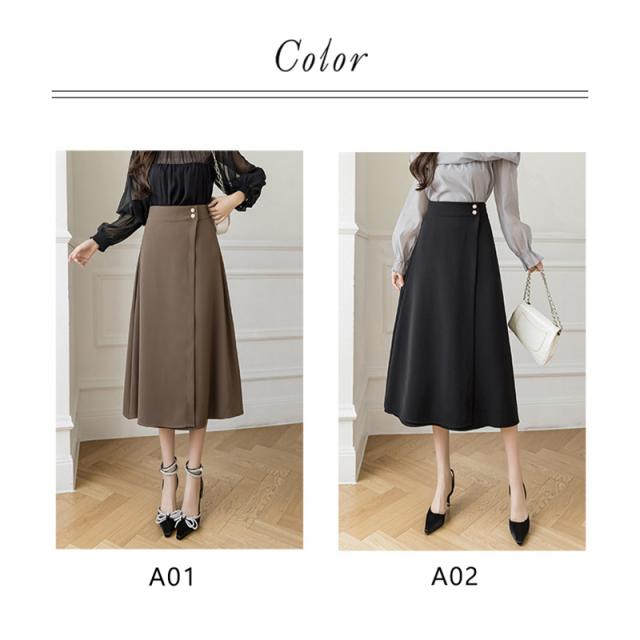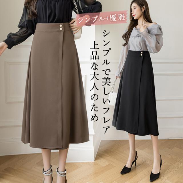 フレアスカート ボタンスカート ミモレ丈 レディース スカート 夏秋ビジネス ペンシルスカート ハイウエスト オフィス フォーマル