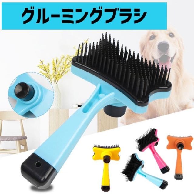 ペット グルーミング ブラシ 全4色 犬猫兼用【ペットブラシ ペット用ブラシ ブラッシング ワンプッシュ 簡単除毛 ペット 犬 猫 ペットグッズ プラスチック 軽量 トリミング ワンタッチ】【メール便送料無料】