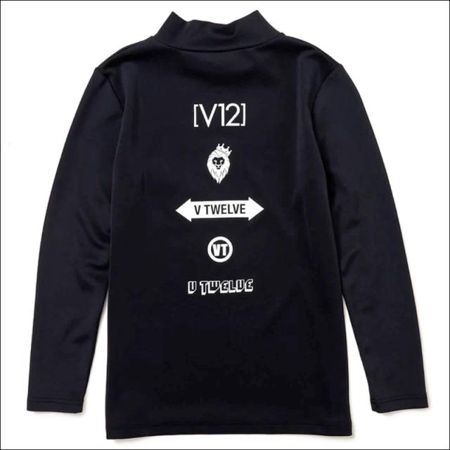 バックにプリントされた様々なV12ロゴが印象的なモックネック。