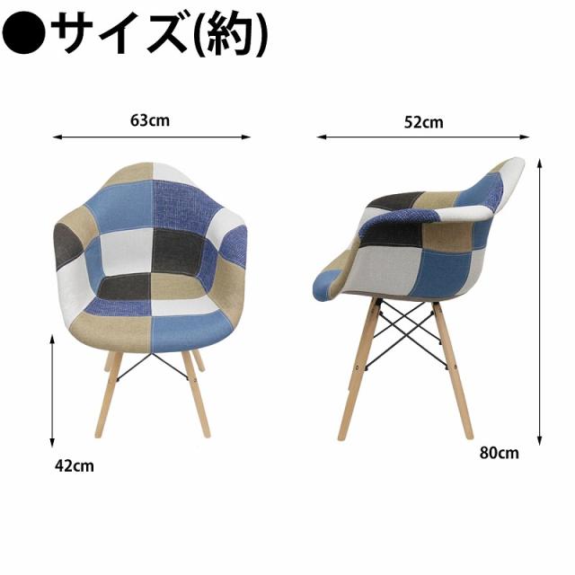 イームズ チェア パッチワーク DAW Eames アームシェルチェア 木脚 デザイナーズ 家具 ダイニングチェア 北欧テイスト ファブリック パッチワーク デニム色 1脚【EM-37】
