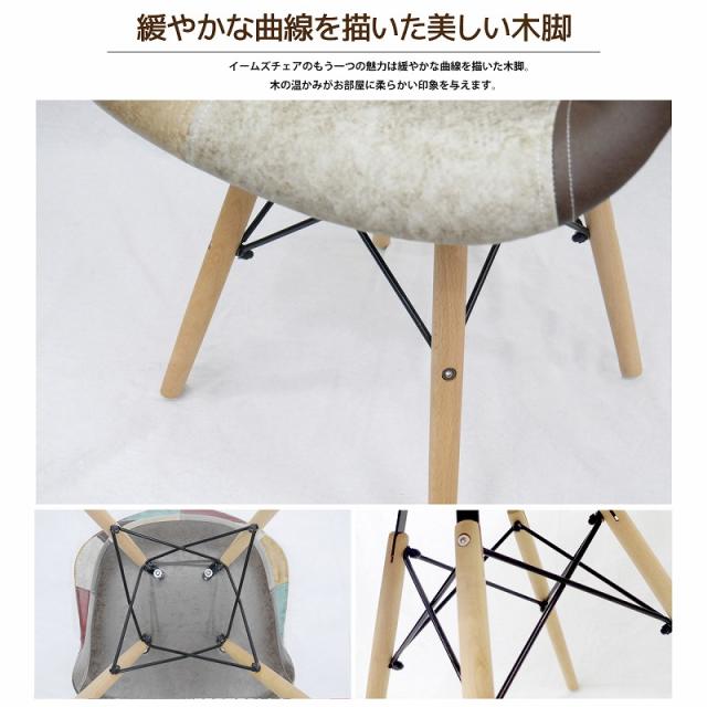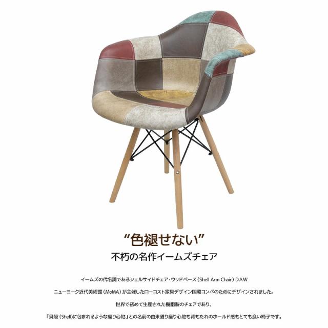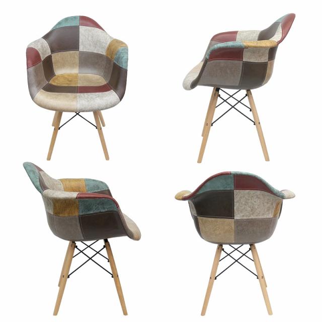 イームズ チェア レザー パッチワーク DAW Eames ヴィンテージ レザー合皮柄 オックス生地 アームシェルチェア 木脚 デザイナーズ 家具 イームズチェア 北欧テイスト レザー 1脚【EM-38】