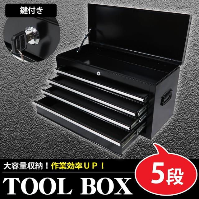 ツールボックス おしゃれ 5段 工具箱 プロ仕様工具箱 キャビネット 工具ケース チェストタイプ 収納 整備 整理 持ち運び ブラック KW-09BK