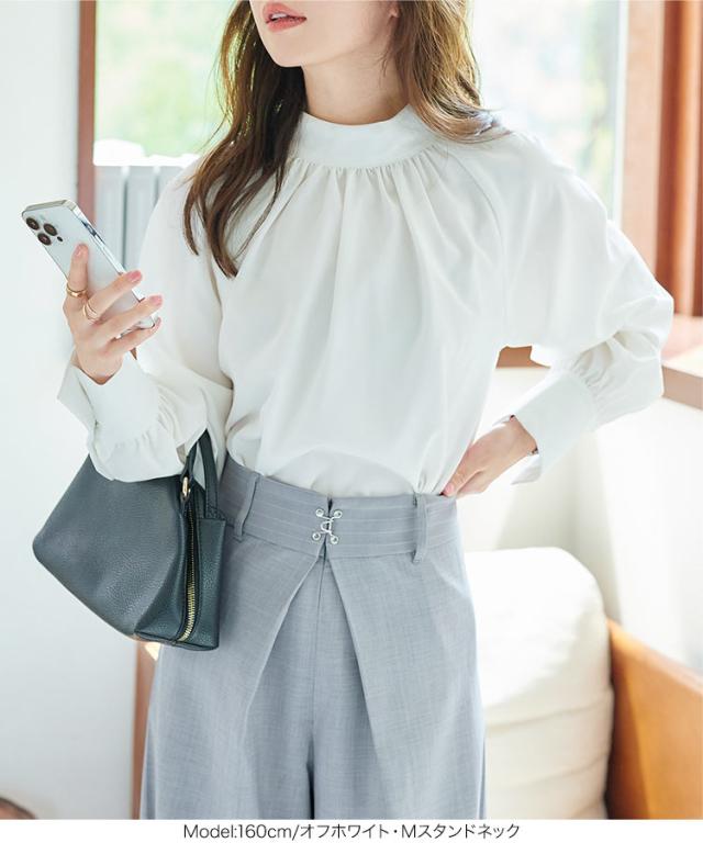 上品さ溢れるデザインブラウス。きれいめな印象なので、オフィスシーンやお出かけシーンにもオススメ◎。シンプルベーシックなデザインでどんなボトムにも合わせやすいので、デイリーに活躍すること間違いなしです。【素材・サイズ感】フェミニンな印象を与えてくれるしなやかなブラウス地。ゆとりはありつつも、程よくコンパクトなサイズ感でジャケットの中にもすっきりと着ていただけます。ポリエステル素材でシワになりにくくお家でのお手入れも簡単です。※キャンセル/変更不可※お届けまでの日程について