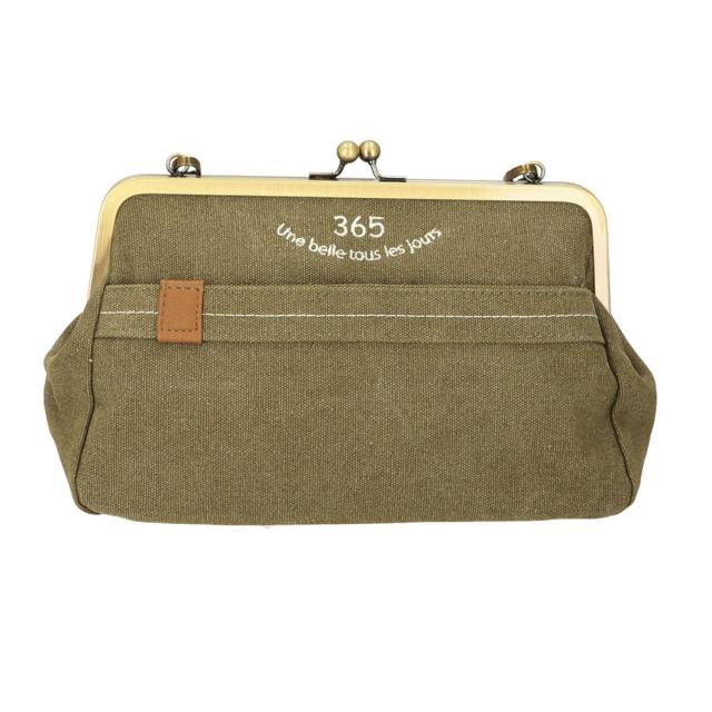 レトロ可愛いがま口スタイル♪大人女子に人気のLafiel(ラフィール)から、刺繍がま口ショルダーが新登場。ナチュラルなコットンキャンバスに、ブラウンのフェイクレザーをポイント使いした大人可愛いミニショルダーバッグ。パチンッと開く、昔懐かしいがま口金具がワンポイント。開口部が大きく開くから小物の出し入れが楽ちん。スマホや長財布、500mlペットボトルも横向きにすっぽり収まる、絶妙なサイズ感が身軽なスタイルを演出。内側にはオープンポケット×1、ファスナーポケット×1を配置し、化粧小物のような細々としたグッズもスッキリ収納。フロントのマグネット式ポケットには、パスケースやスマホ等頻繁に取り出す小物類をしまっておくと便利♪取り外しのできるショルダーベルトは自分サイズに調節可能。肩掛けも斜め掛けも、自分らしい持ち方でスタイリングが自在。ショルダーベルトを外してバッグinバッグにすれば、カバンの中がすっきり片付いて、収納美人に♪通勤・通学用のショルダーにはもちろん、旅行用のサブバッグにも使いやすいカジュアルなルックスが魅力。「365 Une belle tous les jours」・・・バッグフロントの刺繍は「365日、美しく素敵な毎日を」という願いを込めてフランス語で綴られたセンテンス。