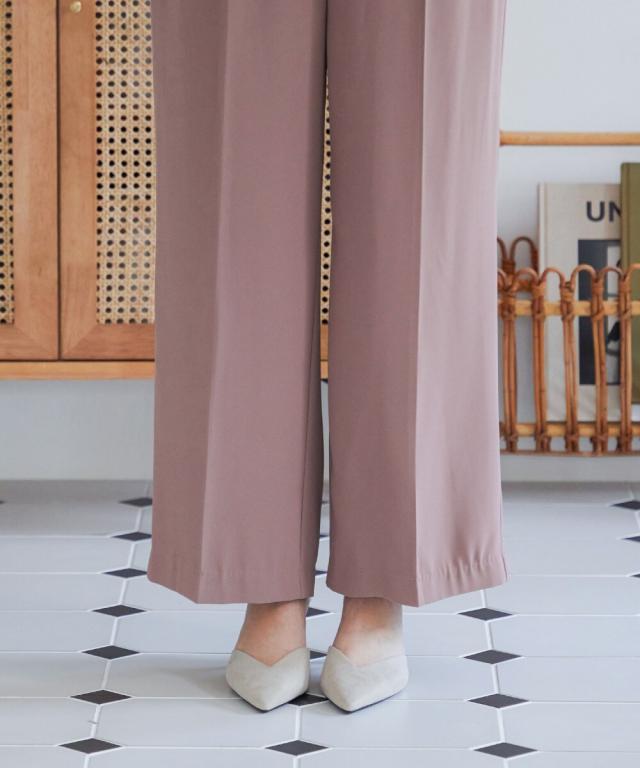 ワイドパンツなので気になる脚のラインもばっちりカバー。