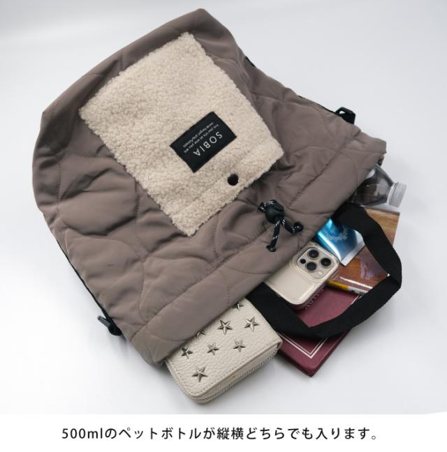 見た目以上の収納力を発揮! キルトボアショルダーバッグ