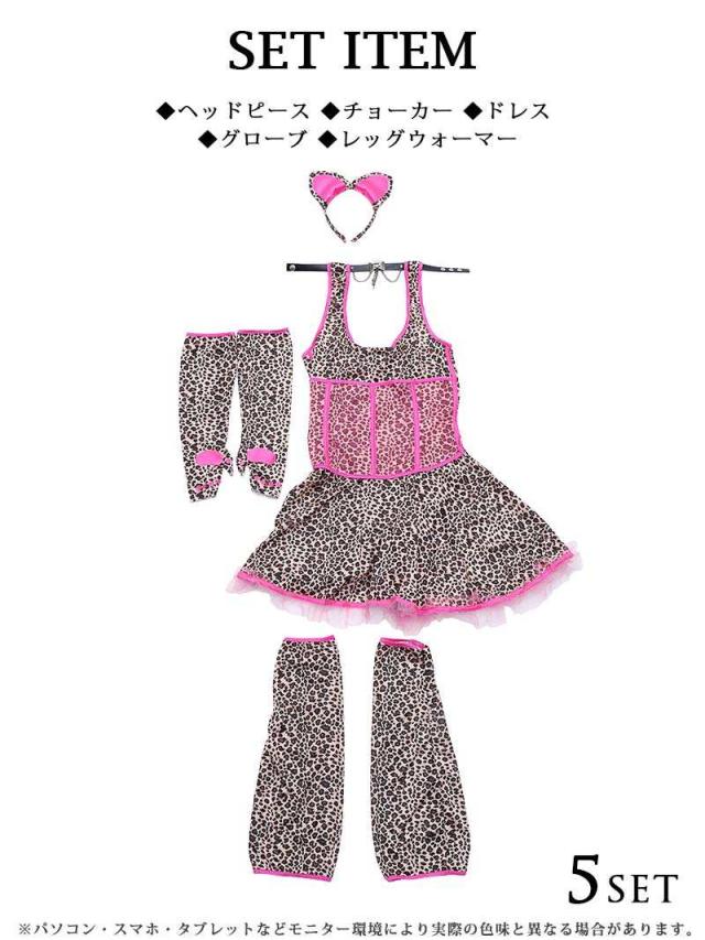 ☆猫耳や豹柄の肉球付きアームウォーマーやレッグウォーマーを含む5点がセットになったレディースコスプレセットはキャバクラのハロウィンパーティーやコスプレ撮影会などで活躍するキャバ嬢さんやコスプレイヤーさんにピッタリのセクシーコスチュームです♪