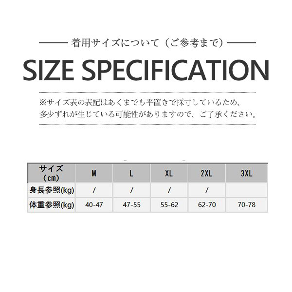 ※基本的に、XL・LL・2Lのサイズはすべて同じサイズです。