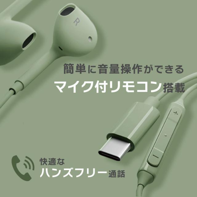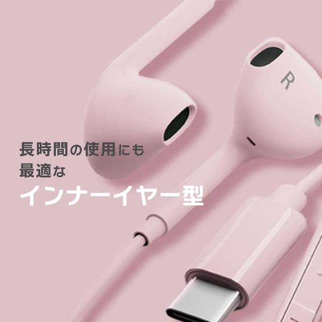 USB Type-C ステレオイヤホン インナーイヤー イヤホンマイク ハンズフリー 通話 ブラック ホワイト ブルー ピンク ベージュ グリーン イエロー スマホ スマートフォン タイプc メール便送料無料