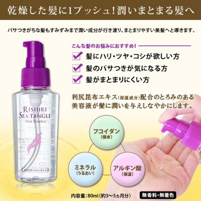 利尻昆布ヘアエッセンス ヘアケア パサつき ごわつき 乾燥 毛先ケア 潤い ハリ ツヤ コシ 美容液 保湿 しなやか フコイダン