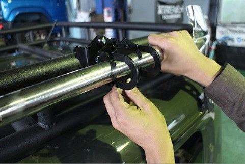 ルーフラックやリアキャリアなど、取り付ける側がφ38のものにお取り付け可能です。
