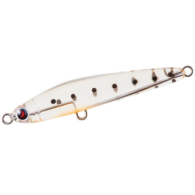ノーウエイト仕様ながら、ソリッドボディの特徴である質量の高さで驚きの飛距離を実現。また、十分な自重を持ちながらも比重が軽いため表層をテロテロと超デッドスローリトリーブすることも可能。常夜灯や月明かりに照らされたクリアボディは、中空ルアーには実現できない透明感のある艶かしいキラメキでターゲットを狂わせる。デッドスローリトリーブからのスローフォールやショートトゥイッチで逃げ惑う小魚を演出するなど、まさにノーシンカーワーム感覚で使えるファイナルウェポン。