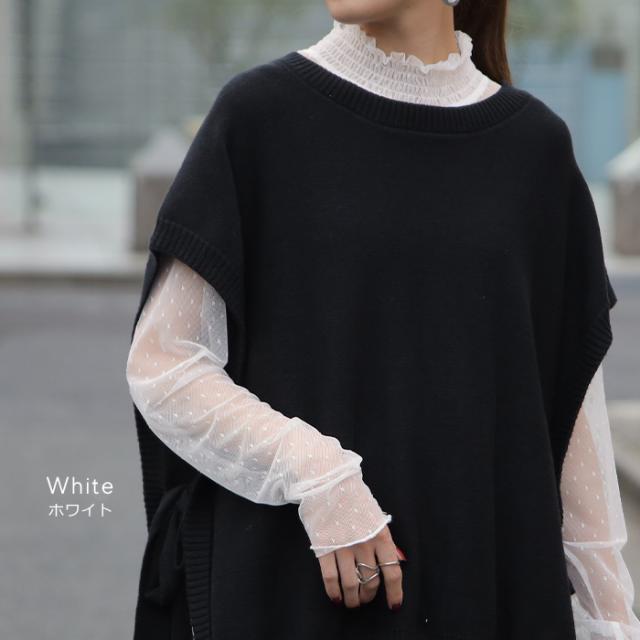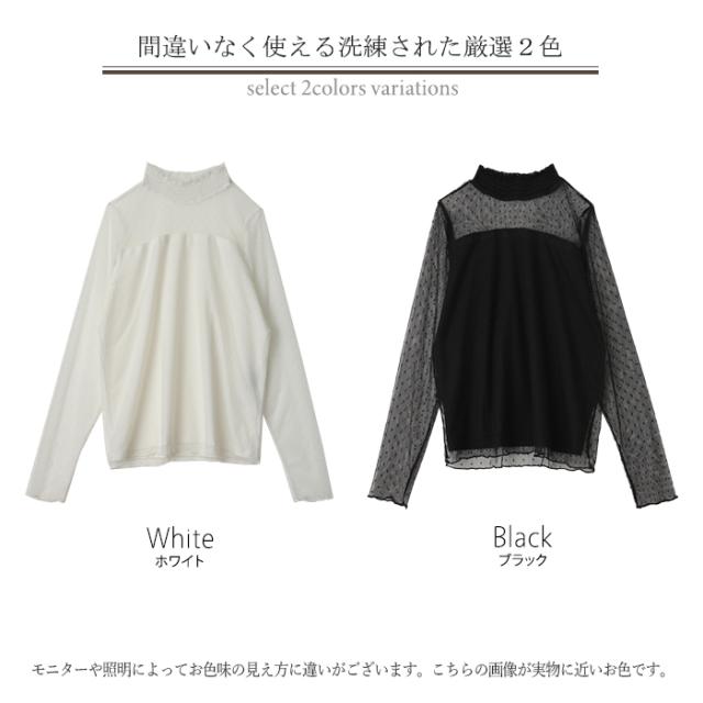 ゆったりめ 「 ドット 」 シースルー トップス レディース シアー チュール ドット シアーインナー レイヤード ハイネック インナー 長袖 透け 重ね着 薄手 タートル メロウ きれいめ 体型カバー 大きいサイズ 黒 白 緑 冬 秋 HUG.U 秋新作