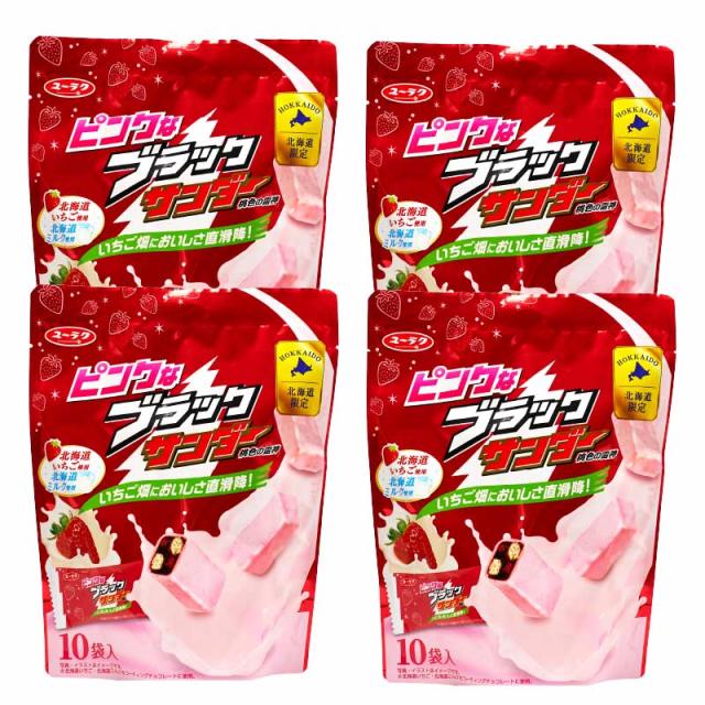 ピンクなブラックサンダー 10袋入 × 4袋 有楽製菓 ユーラク 北海道 送料込 いちご ストロベリー ミルク お土産 チョコレート プレゼント