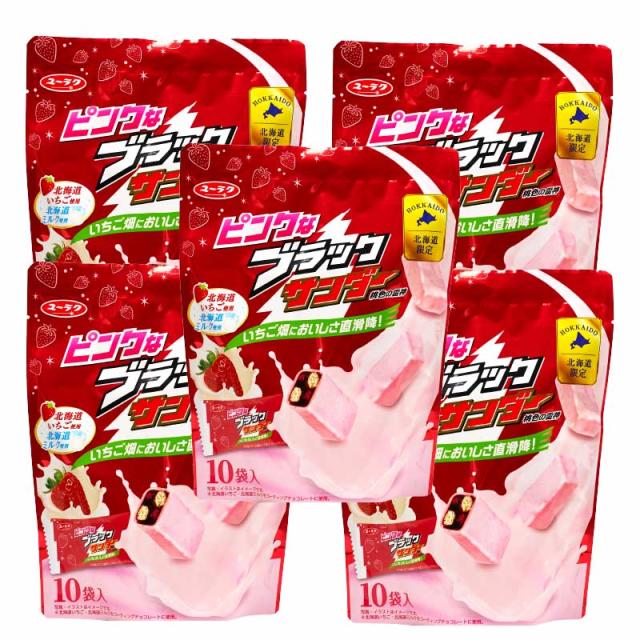 ピンクなブラックサンダー 10袋入 × 5袋 有楽製菓 ユーラク 北海道 送料込 いちご ストロベリー ミルク お土産 チョコレート プレゼント
