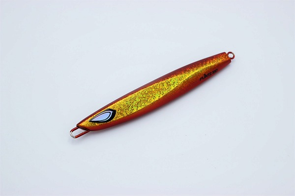FLINTZ は急速落下が得意な8:2 リアバランスベリーショートモデル。本来狙いとするウエイトに敢えて+10gを乗せることにより、一気にボトムまで到達し誰よりも早いターゲットへのアプローチを可能とした。ベースとなるホログラムパターンには砂目のサンドホロを採用。まさに小イワシのウロコといった感じがとてもリアルであり、僅かな光量の中でもギラギラと非常に反射率の高いパターンである。ターゲット:タチウオ・マダイ・ブリ・ヒラマサ・カンパチ・カツオ・ヒラメ・根魚系・シーバスetc…