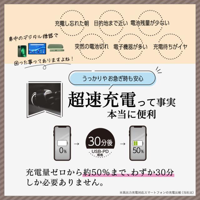 シガーソケット充電器 PD3.0対応 Type-C×1ポート Type-A×1ポート 車載充電器 超速充電