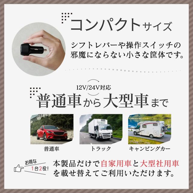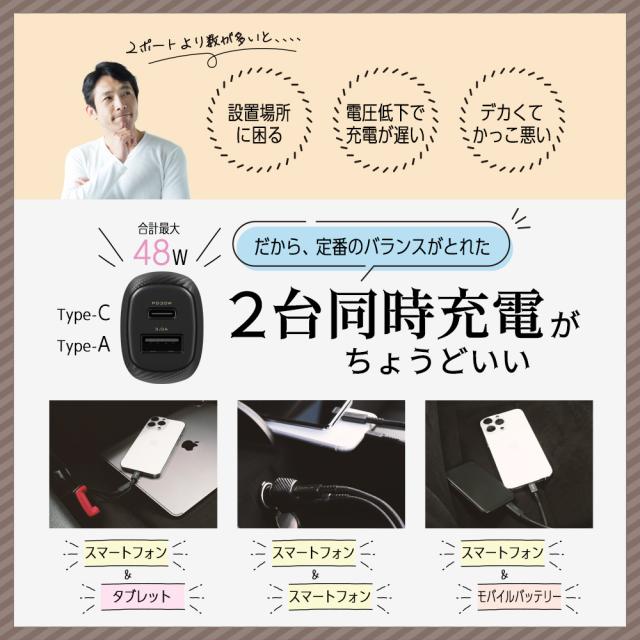 ・USB Type-Cポート×1とUSB Type-Aポート×1を搭載した車載充電器