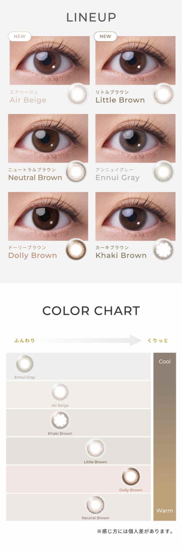 ・展開カラー:エアベージュ リトルブラウン ニュートラルブラウン アンニュイグレー カーキブラウン ドーリーブラウン