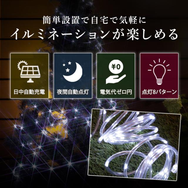 ソーラーイルミネーション ロープライト ロールライト 200球 屋外 ソーラーイルミネーションライト イルミネーション ソーラー クリスマス ライト ツリー 飾り付け チューブ 防水加工 柔軟性 屈曲性 【送料無料】
