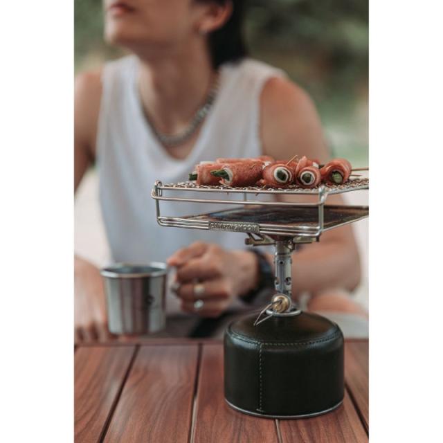 調節の難しいシングルバーナーの強い火力を柔らかな赤外線の熱に換え、とろ火使用ができます。クッカーを置く際の安定板・滑り止めとしても。