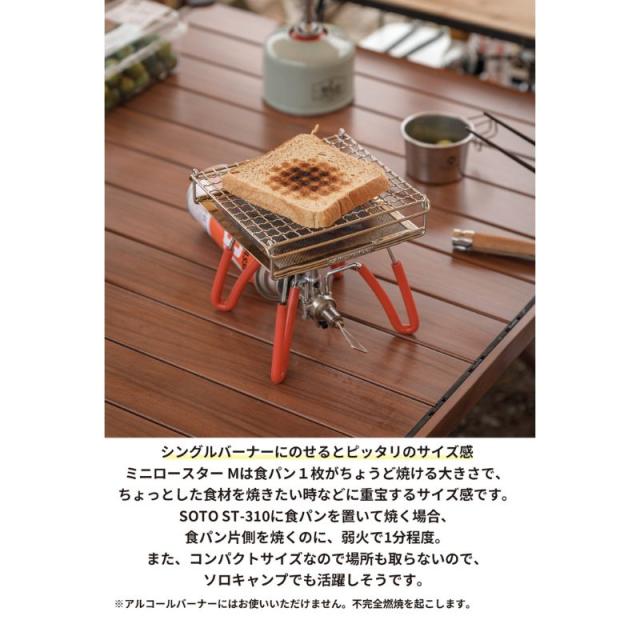 SOTO ST-310に食パンを置いて焼く場合、食パン片側を焼くのに、弱火で1分程度。