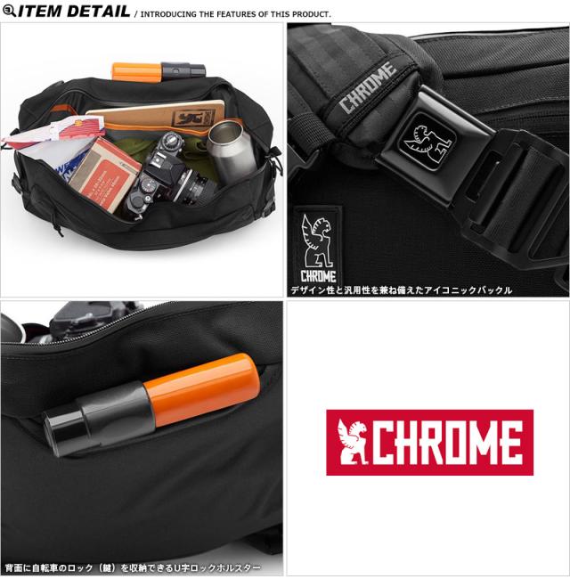 CHROMEからミニマルなフォルムで耐久性の高く、荷物の携帯に適した全天候型のショルダーバッグが登場。携帯電話、コンパクトカメラ、財布、鍵、水筒など、デイリーユースのアイテムを運ぶことに特化したサイズ感。加えて、貴重品を入れるのに重宝する防水ジッパー付メインポケットや、クイックアクセスできるフロントポケットは移動時の利便性が高く、自転車乗りにはとても便利なU字ロックホルスターも背面に完備。ミリタリーグレードの1050デニールナイロンを使用した頑丈なつくりで、アルミニュウムバックルを採用したことで軽量化も両立しています。