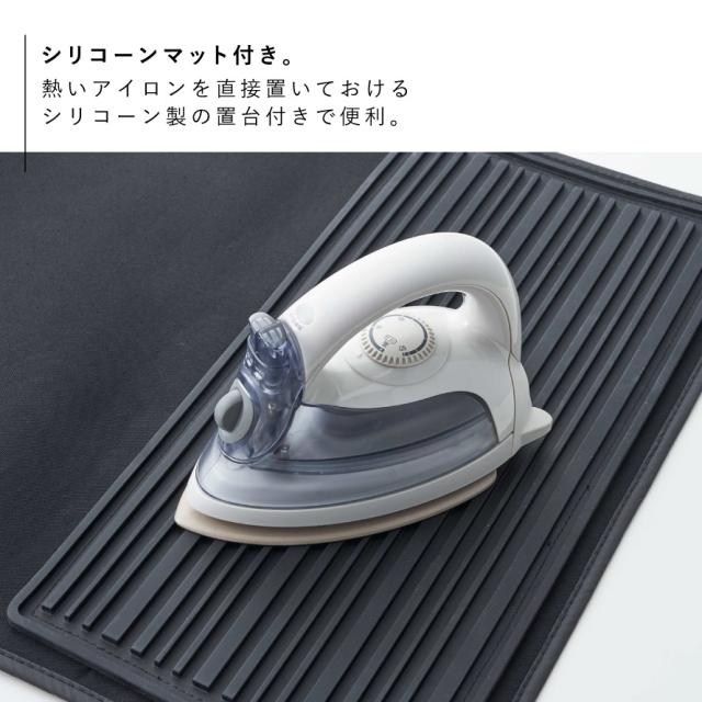 熱いアイロンを直接置いておけるシリコーン製の置台付きで便利。スムーズにアイロン掛けができます。