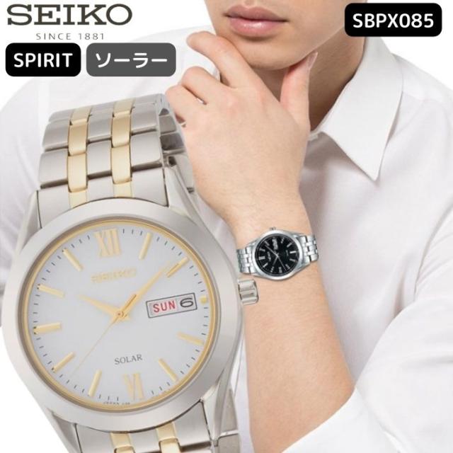 セイコー SEIKO スピリット SPIRIT SBPX085 ソーラー メンズ 正規品 腕時計 メンズ ホワイト アナログ ウォッチ セイコー セレクション クラシカル サファイアガラス ホワイト文字盤 日付 曜日表記 ソーラーモデル 電池交換不要 記念日 誕生日 ご褒美 プレゼント sbpx085