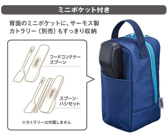 ■ポーチの背面にはサーモス フードコンテナースプーン(APC-160)・スプーン ハシ セット(CPE-001)がすっぽり収まるポケット付き