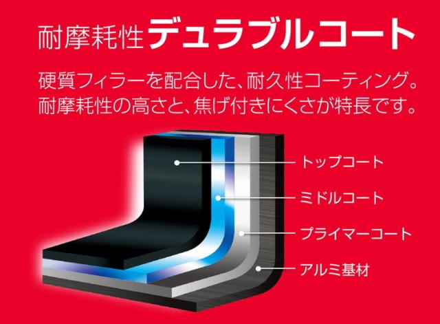 ■外面コーティングがあるからお手入れカンタン!耐摩耗性デュラブルコートで焦げ付きにくく長持ち