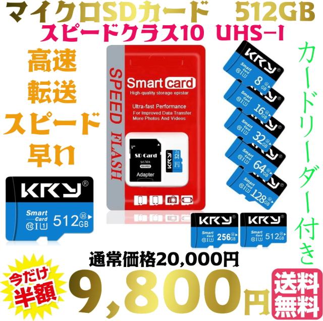 【送料無料・税込み】Micro SD 512 GB マイクロ SD card class 10 クラス UHS 1 SDXC カード カードリーダー 付き TF 記録 録画 録音 写真 撮影 音声 保存 データ 高速 速度 早い 読み込み 書き込み パソコン スマホ カメラ 防犯 ギガ ドローン 人気 売れ 激安 爆速 3年保証
