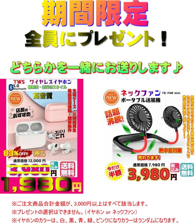 商品購入合計金額が3,000円以上のお客様は全員プレゼント♪