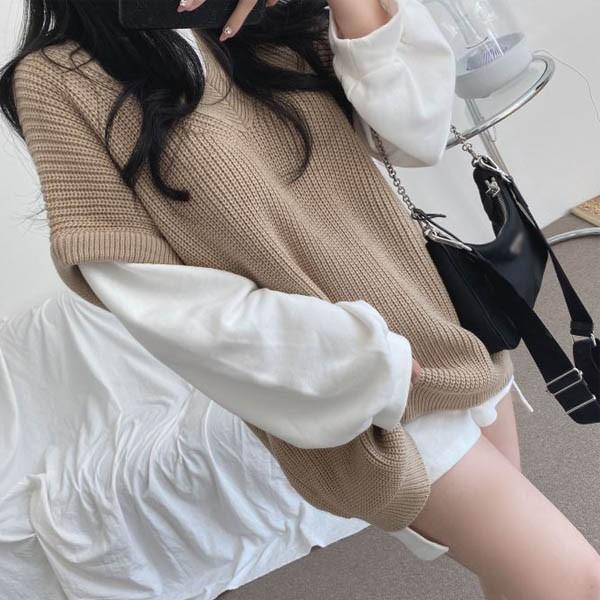 ニットベスト レディース トップス オーバーサイズ ビッグシルエット Vネック ニット ベスト レイヤード 春 秋 ゆったり かわいい ゆるかわ カジュアル ノースリーブ セーター 韓国風 eh004c9c9c9