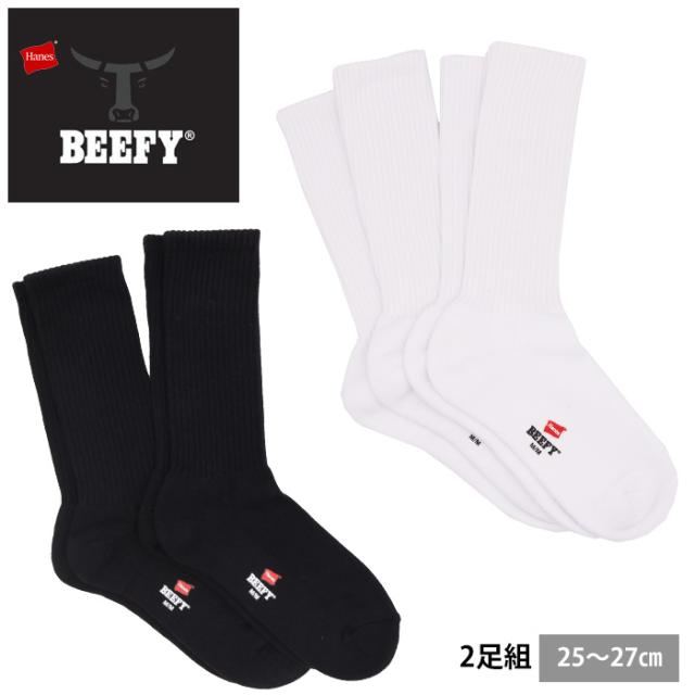 靴下 メンズ ヘインズ Hanes ビーフィー ソックス フルレングス 長め ハイソックス ソックス2P HMSBW001 メンズソックス スポーツソックス 通勤 通学 ブランド ロゴ ワンポイント 2枚組 2セット BEEFY
