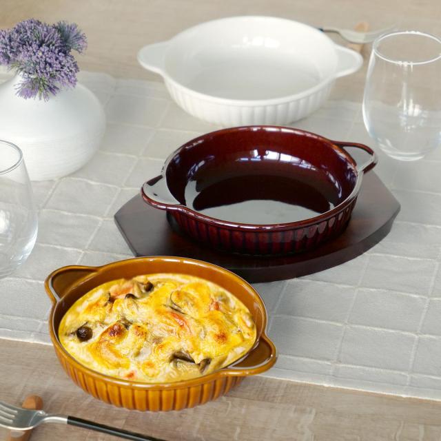 ほっこりと味わいのある雰囲気が魅力の萬古焼グラタン皿
