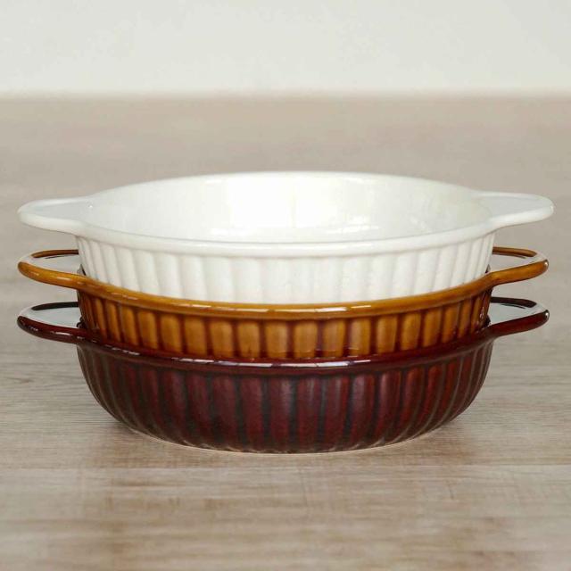 グラタン皿 一人用 丸 16cm 立筋 耐熱 陶器 萬古焼 ( 食洗器対応 電子レンジ対応 オーブン対応 オーブンウェア 耐熱皿 1人用 グラタン ラザニア 煮込み料理 シンプル 耳付き 丸型 おしゃれ )
