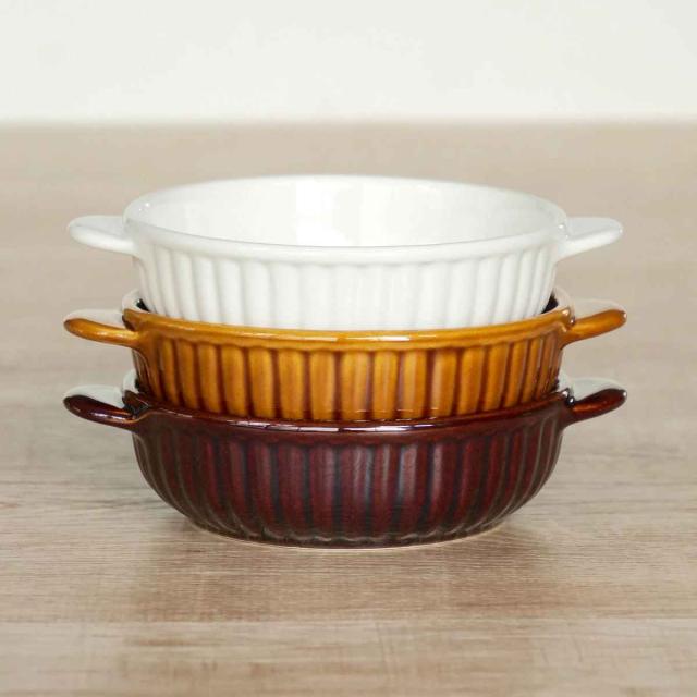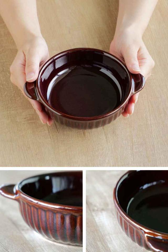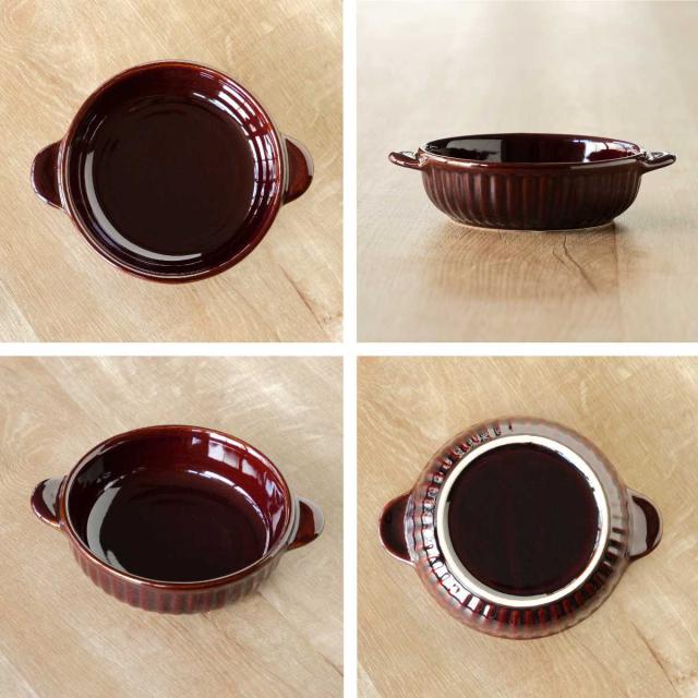 グラタン皿 一人用 丸 13cm 立筋 耐熱 陶器 萬古焼 ( 食洗器対応 電子レンジ対応 オーブン対応 オーブンウェア 耐熱皿 1人用 グラタン ラザニア 煮込み料理 シンプル 耳付き 丸型 おしゃれ )