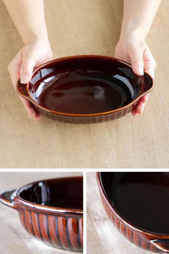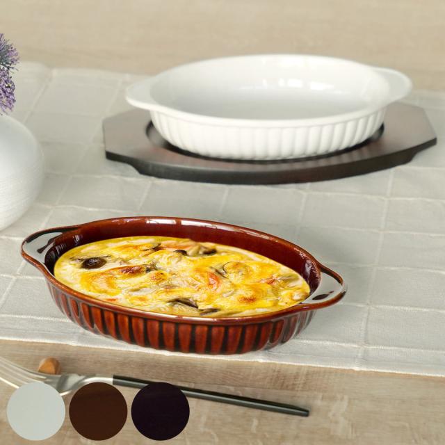 グラタン皿 オーバル 21cm 立筋 耐熱 陶器 萬古焼 ( 食洗器対応 電子レンジ対応 オーブン対応 オーブンウェア 耐熱皿 1人用 グラタン ラザニア 煮込み料理 シンプル 耳付き 楕円型 おしゃれ )