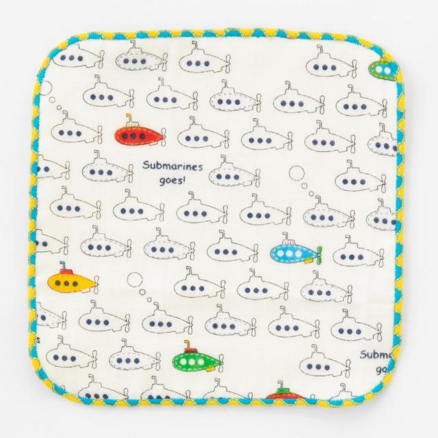 ●潜水艦のポップな柄が可愛いガーゼミニタオルです。