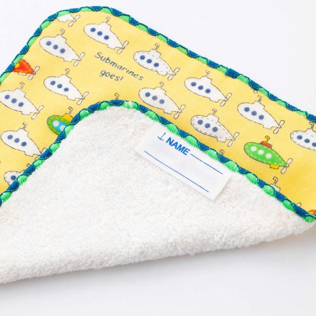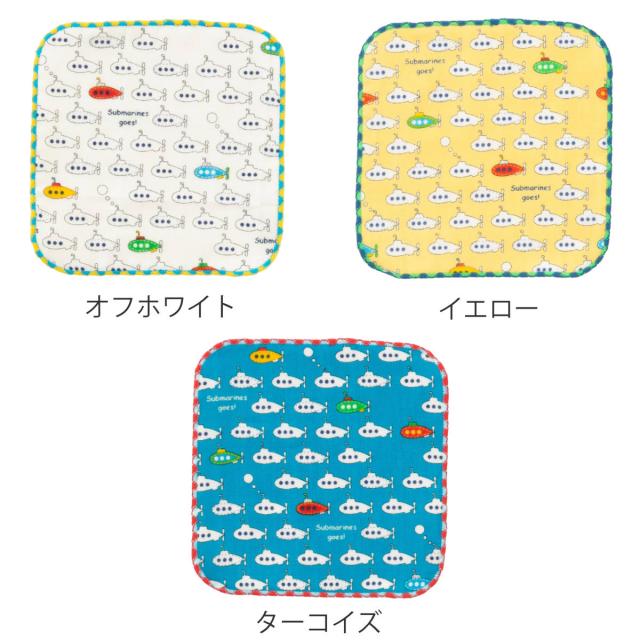ミニタオル ガーゼミニハンカチ 15×15cm サブマリン ( ハンドタオル 手拭き ガーゼ ハンカチ タオルハンカチ 綿100 ミニハンカチ 手ふき 手洗い 名前ラベル 名前タグ 小さめサイズ )