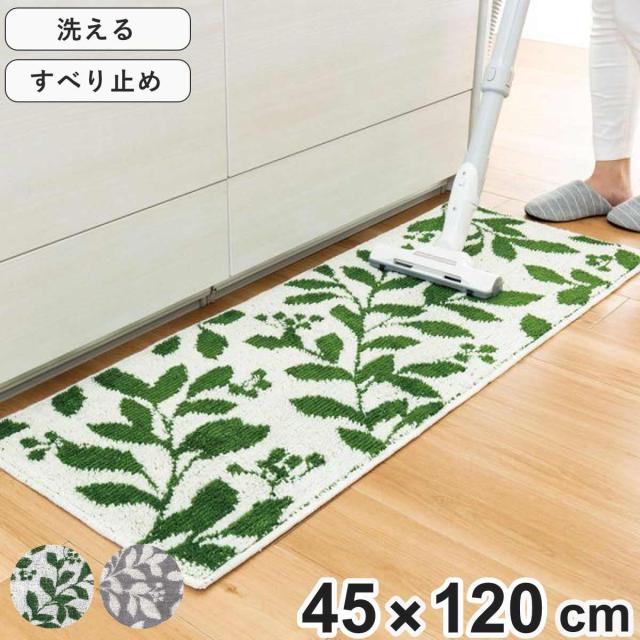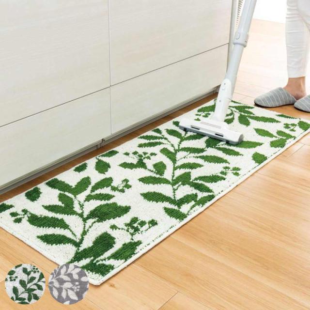 《 LH10854 45 180 ボタニカル リーフ リーフ柄 植物 ラグマット 足元マット 室内マット フロアマット 屋内マット 多目的マット 長方形マット キッチン用品 キッチンアイテム キッチングッズ キッチン小物 キッチン雑貨 おすすめ オススメ お洒落 オシャレ 可愛い かわいい カワイイ 新生活準備 ソファサイド ベッドサイド 滑りにくい すべりにくい ズレない グリーン 緑 グレー 》