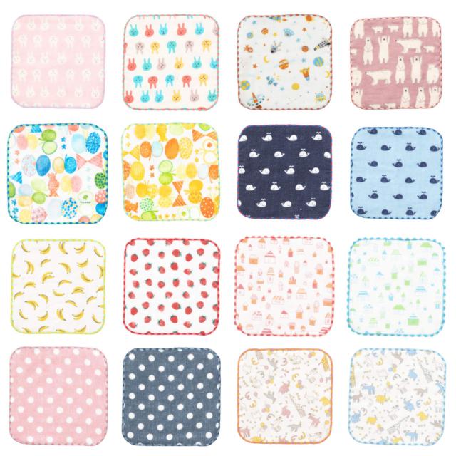 柄がおしゃれでかわいい、ガーゼミニタオルです。お子さまの手にちょうどよい約15cmの角サイズです。四つ折りにすると、縦横が約7cmなので、子ども服の小さなポケットにも入ります。幼稚園や小学校やお出かけの際など、どこでも持ち歩けます。